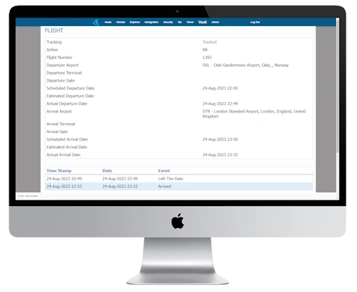 Flight Tracking is an optional component of Voyage Manager's comprehensive travel tracking service. It enhances travel tracking further by providing additional insights into the progress of trips.